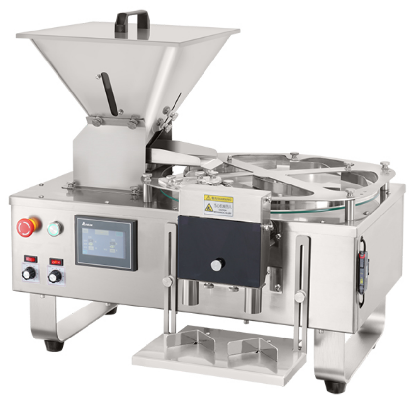 The tabletop pill counter is applicable for counting and packaging types of pills, capsules, tablets, even candies and other foodstuff. It is equipped with two filling heads and a optical fiber sensing probe, which owns the function of "no bottle no filling". It has a digital touch screen to set working speed, counting parameters easily. The machine designed according to GMP standard is a high-tech medication packaging machine integrating a photoelectric motor.